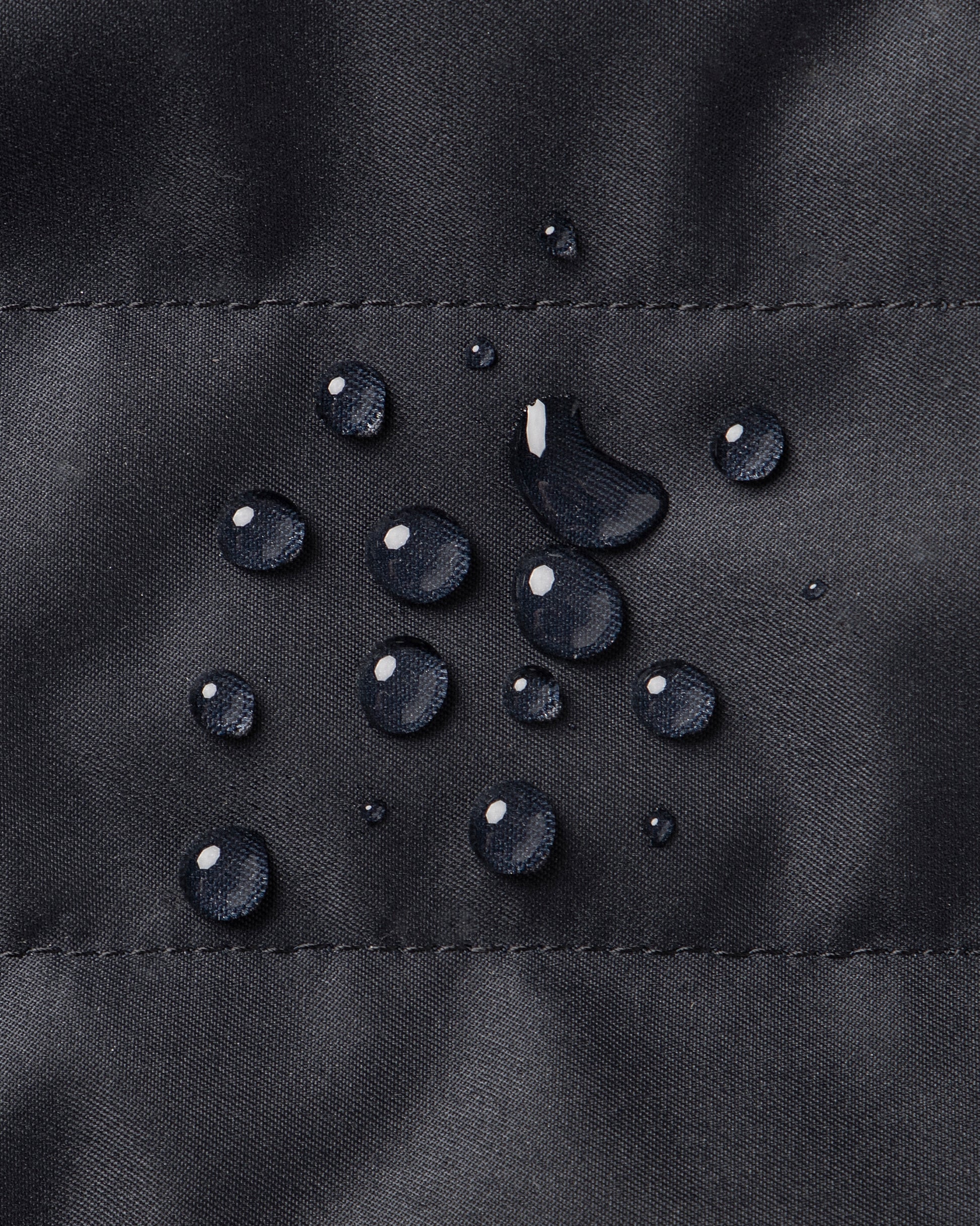 Composição: Poliéster com acabamento water-repellent (repelente à água).